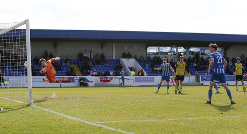 BLUES INTO PLAY-OFF’S A Tom Davies goal four minutes from time takes the Blues into the play-off’s with victory over the league leaders. |